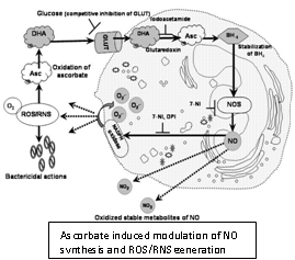 Large stores of ascorbate are present in PMNs, we demonstrated that ascorbate prevented oxidation of tetrahydrobiopterin, a cofactor of NOS, to support the enzymatic synthesis of NO. Studies on PMNs from various species, including human, have thus provided a convincing explanation as to why PMNs store exceptionally large amounts of ascorbate. It was evidenced that ascorbate deficiency led to a decline in both expression (both nNOS and iNOS expression) and catalysis of NOS in neutrophils among scorbutic guinea pigs. This was owing to instability of tetrahydrobiopterin a vital co-factor for NOS catalysis, and a rise in corticosterone levels as evidenced in scurvy, thereby interfering with iNOS expression among the scorbutics. These studies support the contention of Sir Pauling that vitamin C enhances immunity against infections.