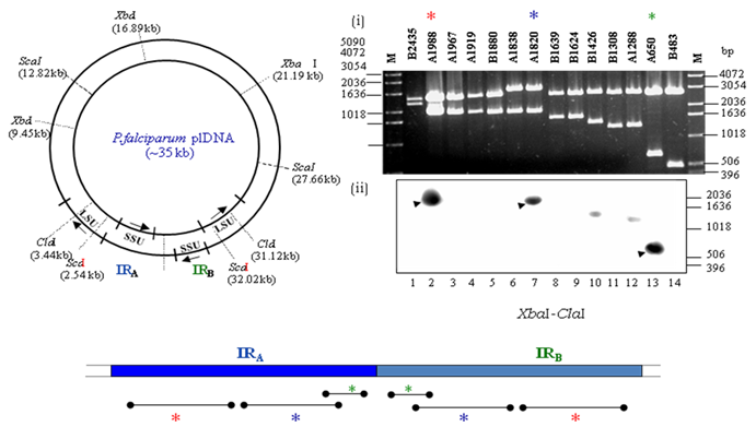 Figure: Signals observed for plDNA fragments using 5’-end labeled nascent DNA from replicating apicoplast DNA as probe. Ori sequences were identified within the IR region.
